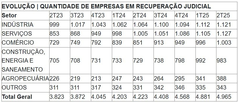 De acordo com levantamento do Monitor RGF, 29% das empresas que saíram de processos de recuperação judicial no segundo semestre deste ano acabaram falindo. No período, também foi identificado que o número de empresas em recuperação judicial no Brasil voltou a subir, alcançando 4.965 companhias com processos ativos — o maior volume da série histórica iniciada em 2023 pelo Monitor RGF da Recuperação Judicial em 2023.