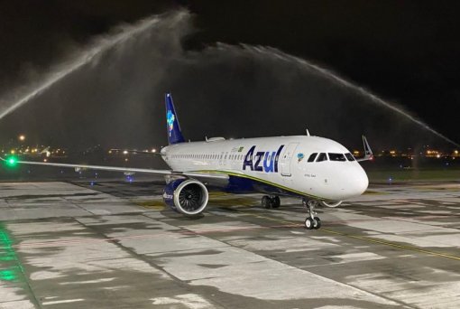 O primeiro pouso ocorreu por volta das 23h, de segunda-feira (30) e recebeu o batismo da aviação, com jatos de água formando um arco sobre a aeronave. No terminal, os tripulantes da Azul foram recebidos com uma placa comemorativa da nova rota.
