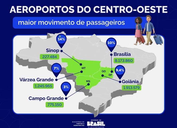 "É desenvolvimento regional conectado ao crescimento do país. Fortalecer a infraestrutura aérea é mais eficiência logística e competitividade para quem produz. Também representa integração do campo com os mercados nacionais e internacionais. Por isso, nosso trabalho é garantir que o transporte aéreo continue impulsionando a geração de empregos e a integração nacional", explica o ministro da pasta, Costa Filho. A expectativa do governo é de que a região continue a registrar crescimento consistente nos próximos anos, consolidando o Centro-Oeste como um polo de referência para transporte aéreo, desenvolvimento econômico e integração logística.