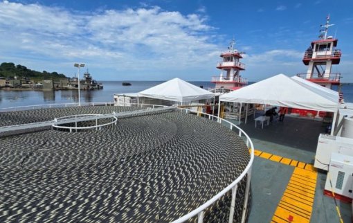 Uma plataforma acoplada a dois rebocadores está implantando os cabos sob as águas do rio Solimões, com quase uma centena de profissionais trabalhando. A embarcação sai de Tefé e vai até Benjamin Constant (AM), com previsão de chegada em 18 de fevereiro.