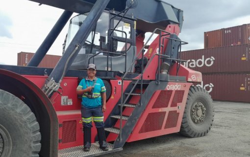 Em 2020, quando surgiu a vaga para operar reach stacker no terminal de Sumaré, foi chamada novamente. Mesmo empregada, não hesitou em aceitar. O equipamento é utilizado na movimentação de contêineres e exige precisão, atenção constante e cumprimento rigoroso de normas de segurança, mas sempre chamou atenção da profissional. “Quando me ligaram, eu não pensei duas vezes. Era a máquina que eu sempre olhava e falava que um dia ia pilotar. Para mim, era a realização de um sonho mesmo”, diz.
