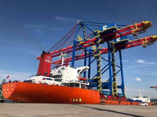 Os portêineres, destinados à operação de embarque e desembarque de contêineres, vieram do porto de Shanghai, na China. Eles saíram no dia 26 de dezembro e chegaram no Brasil após uma viagem de 50 dias. Os equipamentos vieram praticamente montados e a operação de desembarque deve durar quase seis dias. A previsão é que até o fim de março eles já estejam em operação.