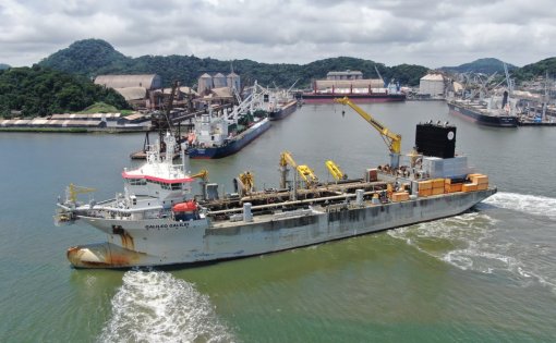 A draga Galileu Galilei começou, no início de novembro, a dragagem para restabelecer a profundidade mínima de 14 metros em todo o canal de acesso ao Complexo Portuário da Babitonga.