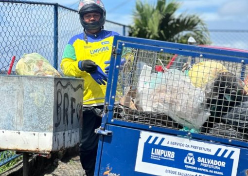 A Empresa de Limpeza Urbana de Salvador (Limpurb) reforça a coleta porta a porta em ruas estreitas da cidade por meio do serviço de moto coletora. A iniciativa funciona como alternativa para atender locais de difícil acesso, onde os caminhões de coleta domiciliar não conseguem chegar.