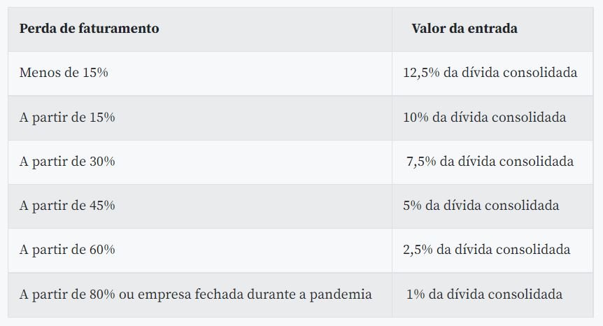 A resolução estabelece os valores mínimos de entrada, que deverá ser parcelada em até oito meses, antes do pagamento do restante da dívida. A divisão foi feita da seguinte forma: