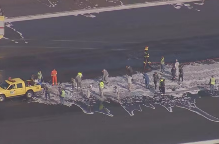 Veículo de inspeção derramou óleo próximo à cabeceira da pista na madrugada. O local é usado tanto em pousos, na frenagem de aeronaves, quanto durante decolagens. Na manhã desta terça-feira (30), equipes de manutenção ainda trabalham na limpeza do local