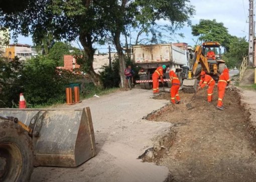 Em Lauro de Freitas, mais de 500 famílias atendidas na creche municipal Nossa Senhora das Graças, e pelo projeto social Construindo o Amanhã, serão beneficiadas com as obras de pavimentação da rua Maria Rosinete Velozo Augusto, no Quingoma.