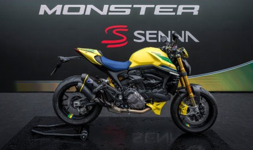 A Ducati lançou a edição especial e limitada “Monster Senna” em homenagem ao ídolo brasileiro. O número limitado de unidades é um tributo à lenda: 341.