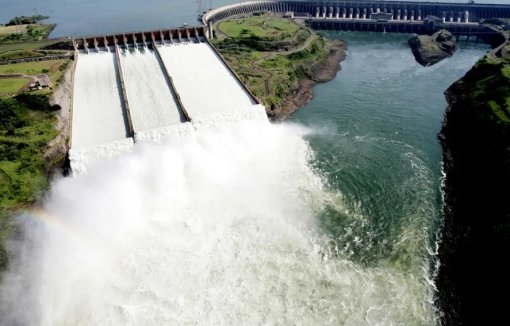 A hidrelétrica começou a ser construída em 1973, passando a produzir energia nove anos depois. Um enorme reservatório no Rio Paraná supre a água que aciona as turbinas de Itaipu.
