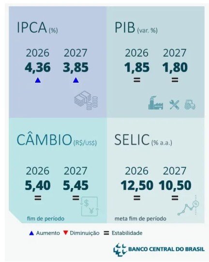 Após esse período prolongado de manutenção da taxa, havia indicação de início de um ciclo de redução, entretanto, diante das incertezas provocado pelo conflito no Oriente Médio, o BC não descarta rever o ciclo de baixa, caso seja necessário.