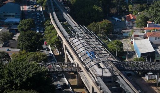 Na Avenida Jornalista Roberto Marinho, na zona sul, as obras do monotrilho deixam clara a paralisação. Por lá, é possível ver árvores atingindo a altura dos trilhos e passando entre as vigas. Nas estações, a falta de acabamento e escadas rolantes envoltas em plástico azul também denunciam que ainda falta muito para que os trens comecem a correr por ali.