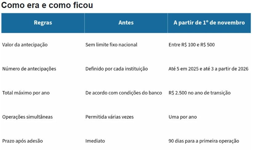 No primeiro ano de transição, será possível antecipar até cinco parcelas, totalizando R$ 2.500; a partir de 2026, o limite cai para três. A medida também restringe a uma operação por ano e exige que o trabalhador espere 90 dias após aderir ao saque-aniversário para solicitar a antecipação do saldo.