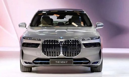 Revelado no ano passado, o novo BMW i7 tem um visual distinto que se destaca por elementos como o conjunto óptico frontal dividido em duas partes (luzes de LED com função DRL na parte superior) - como opcional, o DRL pode vir com cristais Swarovski. Na parte inferior, estão os faróis com tecnologia Matrix e uma enorme grade com acabamento cromado e bordas iluminadas.