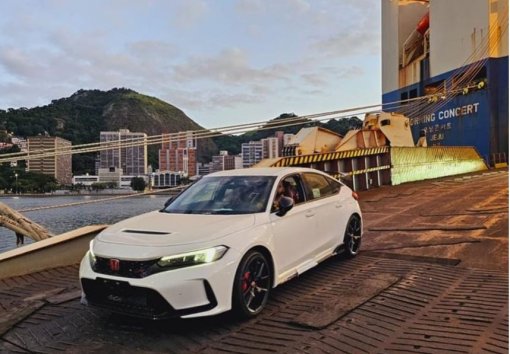 O novo Honda Civic Type R desembarcou no Porto de Vila Velha, no Espírito Santos. O hot hatch foi prometido para 2023 pela Honda no mercado nacional e vai competir com o GR Corolla.