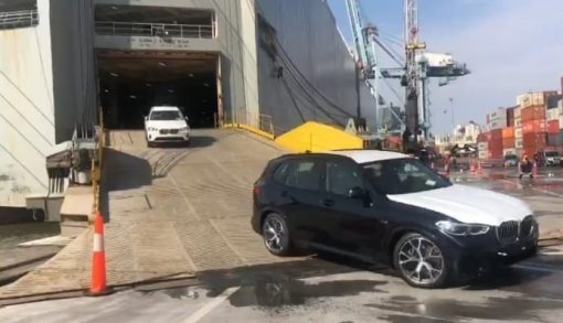 Durante a descida dos carros até o pátio, a operação pode levar até cinco horas, dependendo da quantidade de veículos a serem retirados de dentro da embarcação.