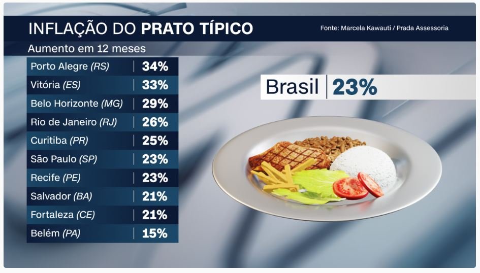 O impacto da inflação sobre os alimentos chegou com a força num velho conhecido do brasileiro: o prato feito, que está, em média, 23% mais caro do que há um ano.