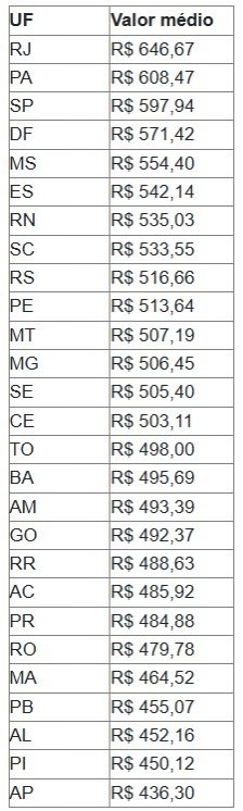 Confira o valor por estado: