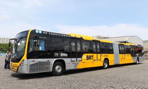 O prefeito do Rio de Janeiro, Eduardo Paes, apresentou nesta terça-feira (27) o novo modelo de ônibus que será usado na operação do sistema BRT na cidade. O veículo articulado, que agora será identificado com as cores amarela e prata, é mais moderno. Paes reconheceu que a população enfrenta dificuldades no serviço, mas destacou a “satisfação e uma alegria sem tamanho” ao receber o primeiro ônibus.