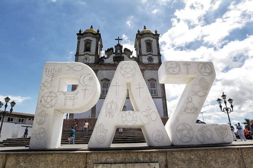 Em frente a Basílica Santuário Senhor do Bonfim, na Cidade Baixa, em Salvador, foi instalada a obra de arte com a palavra PAZ, pelo fim da intolerância religiosa. O monumento ficará à disposição do público na porta da igreja até o fim da quaresma, em 3 de abril.