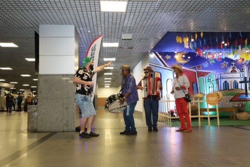 Os turistas que chegam a Salvador para curtir o São João estão recebendo as boas-vindas com um receptivo junino montado pela Secretaria de Turismo do Estado (Setur-BA).