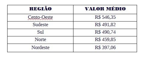 Como destacado acima, o valor médio dos benefícios voltados à refeição e alimentação no Brasil é de R$ 480,48. Veja abaixo por região: